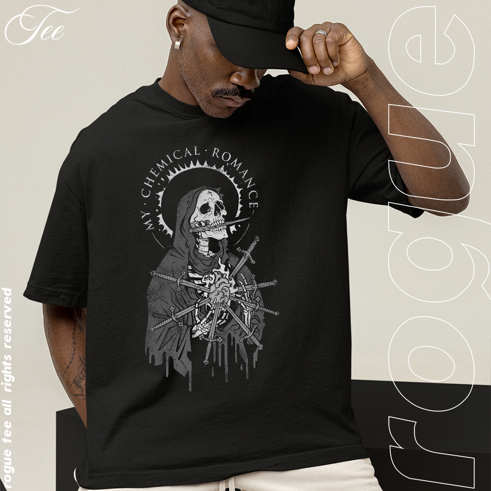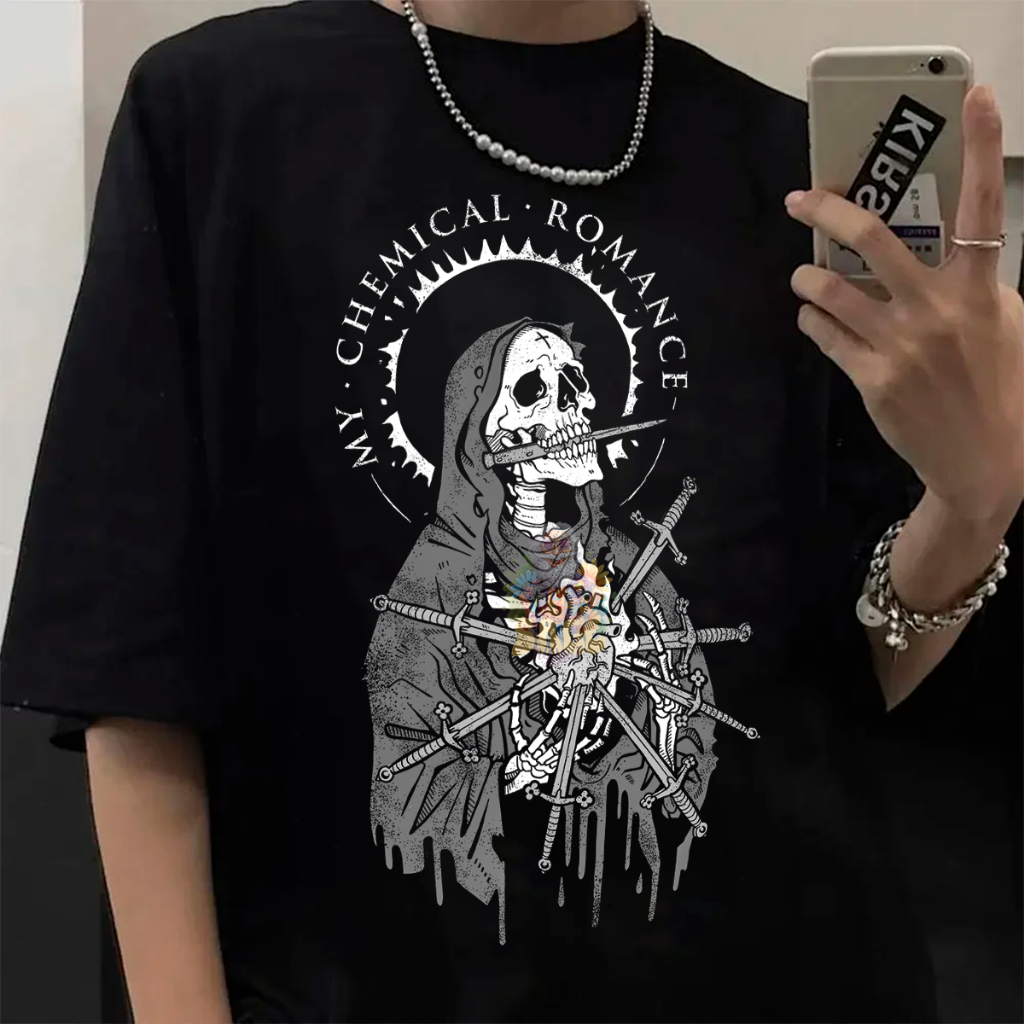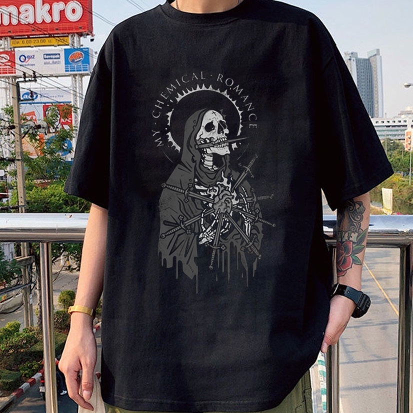 Camiseta Basica e OVERSIZED My Chemical Romance Skull Heart Graphic Rock n Roll Unissex