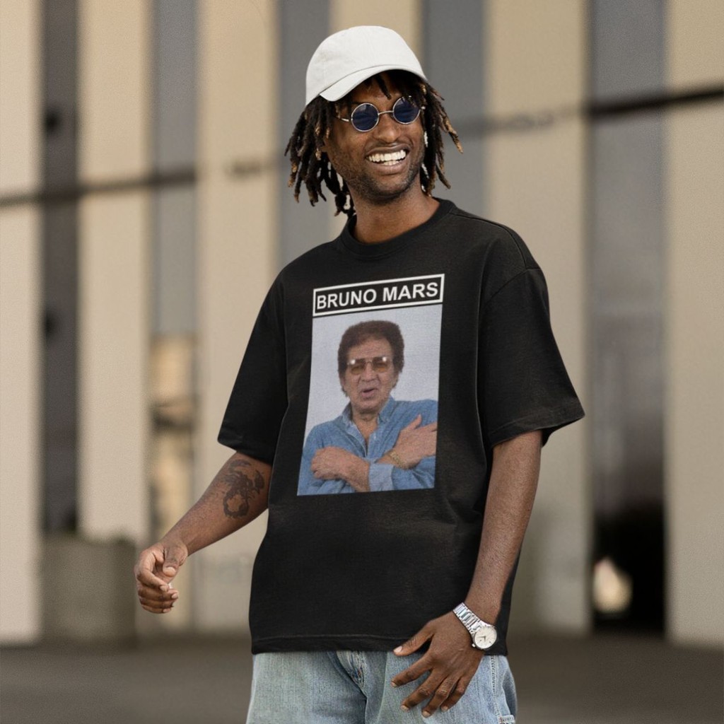 Camiseta Unissex Engraçada Meme Bruno Mars E Reginaldo Rossi Zoeira