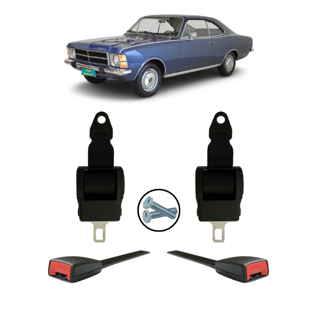 Kit Cinto De Segurança Catraca Retrátil 2 Pontos Dianteiro Completo Chevrolet Opala 1973 Até 1993