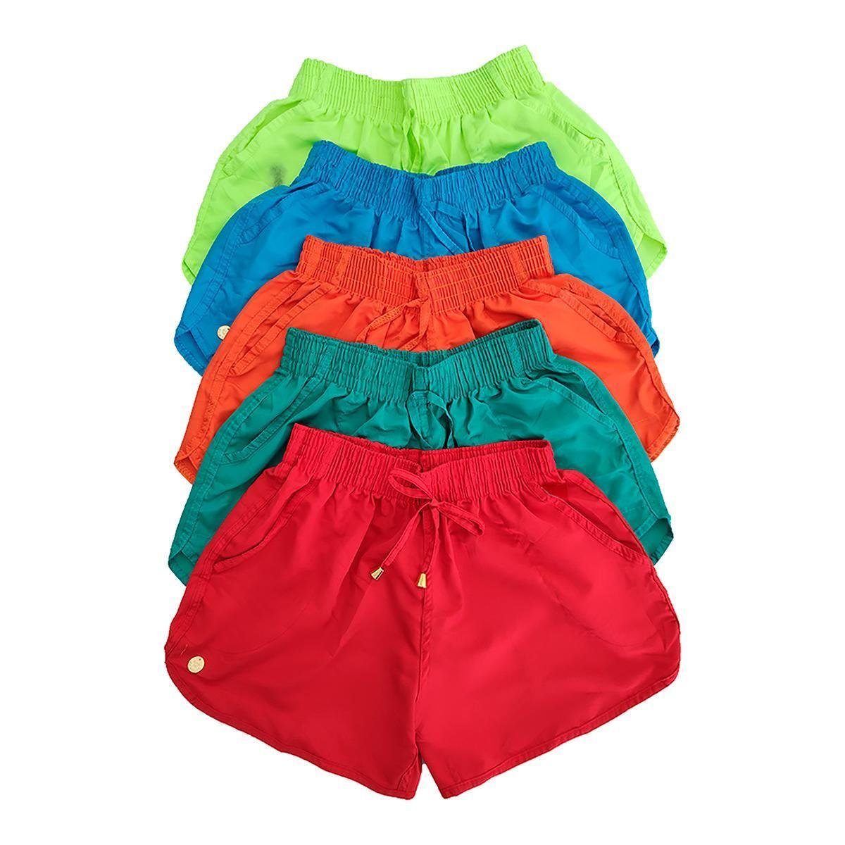 Kit 3 Shorts Tactel Feminino Liso Adulto Moda Verão Praia Piscina 2 Bolsos