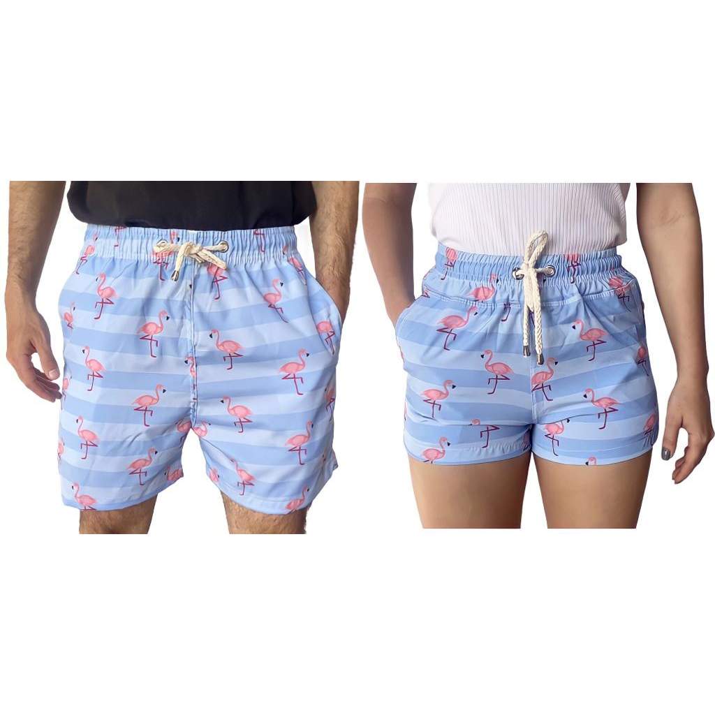 kit shorts feminino masculino estampado verão 2 un praia piscina banho calor soltinho verão cachoeira trilha