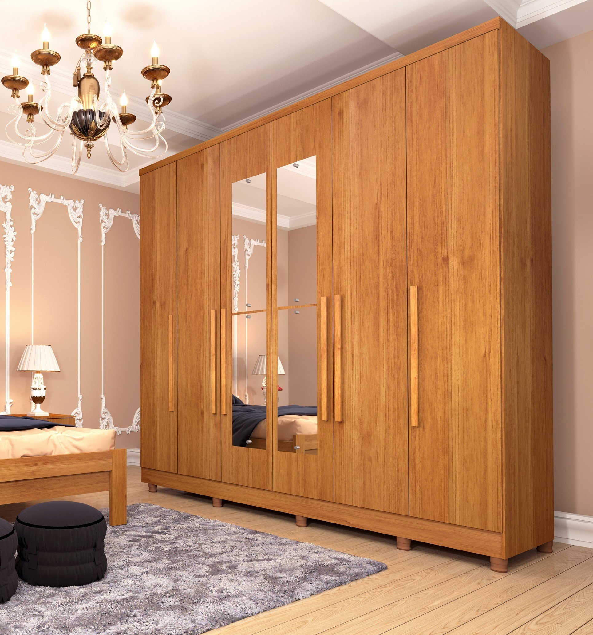 Guarda Roupa Casal Z22 6 Portas 4 Gavetas Com Espelho e Pés Carioca Móveis
