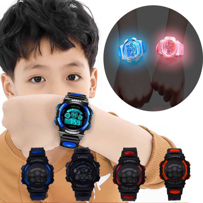 Relógio eletrônico de luz à prova d'água para crianças com LED e tela multifuncional