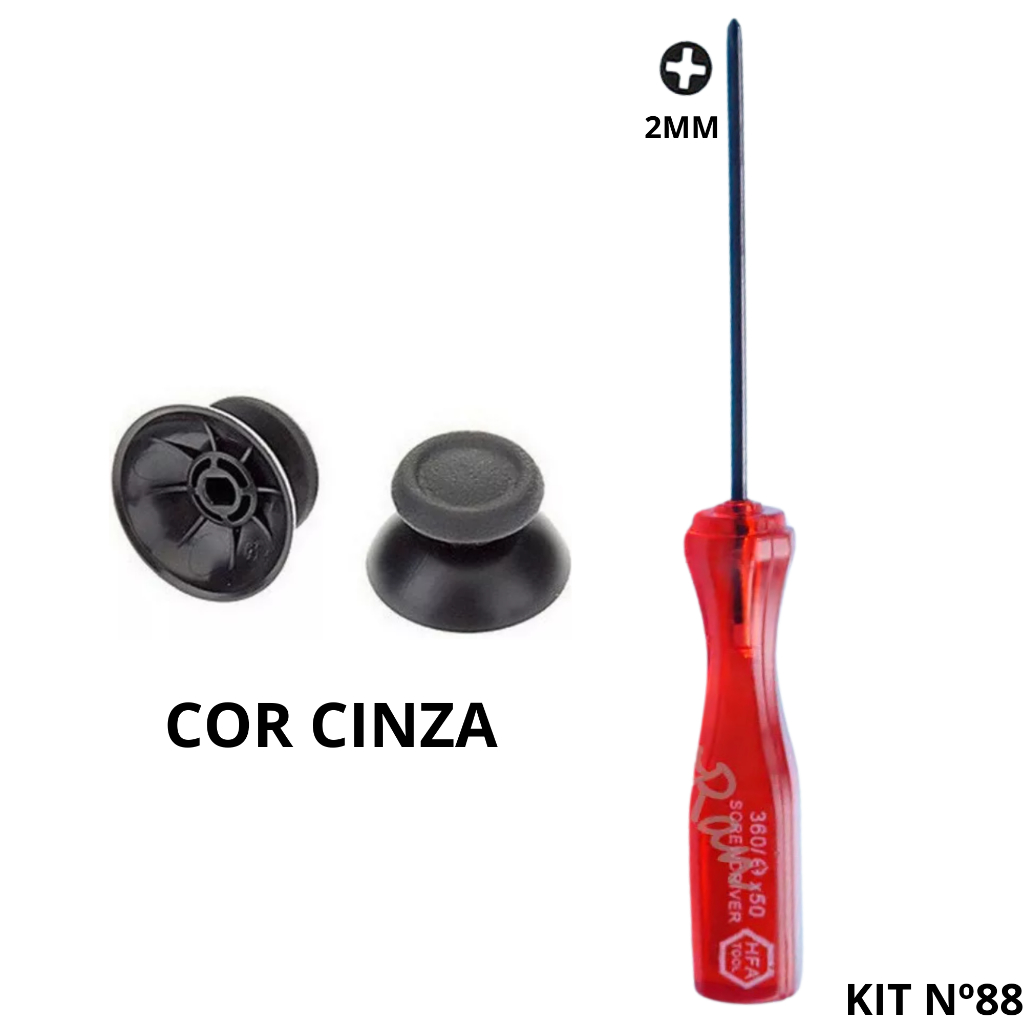 Kit Par Botão Analógico Controle Cinza Ps4 Joystick + Chave Phillips 2mm de 11cm