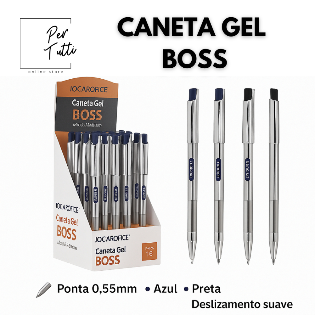 Caneta Gel Boss 0.55 - Azul e Preta - Jocar Office